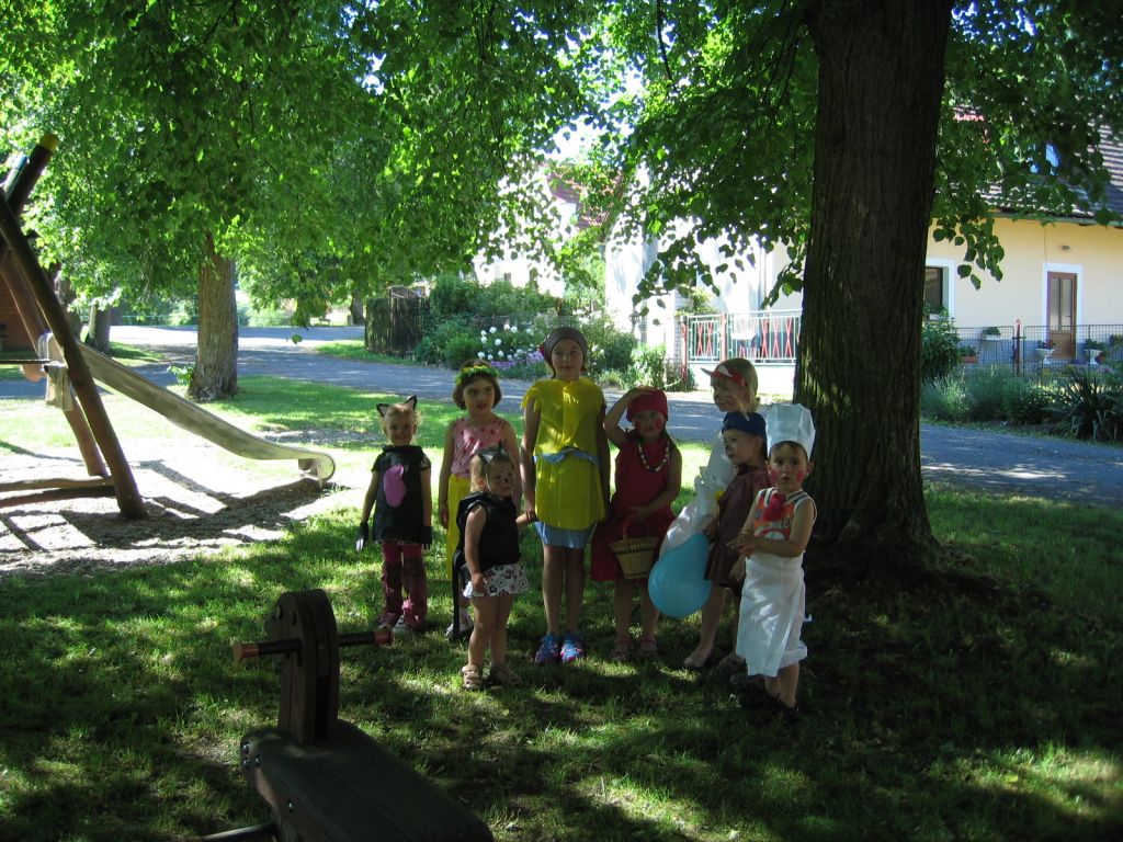U příležitosti dne dětí jsme 8. června 2014 uspořádali pro děti akci "Pohádkohraní s maskami". Děti si vylosovaly masku, tu si následně z připravených pomůcek vyrobily. Poté se vydaly do průvodu, který jsme vzhledem k horku, který tento den panovalo, ukončili na dětském hřišti. Přinášíme Vám několik fotografií: